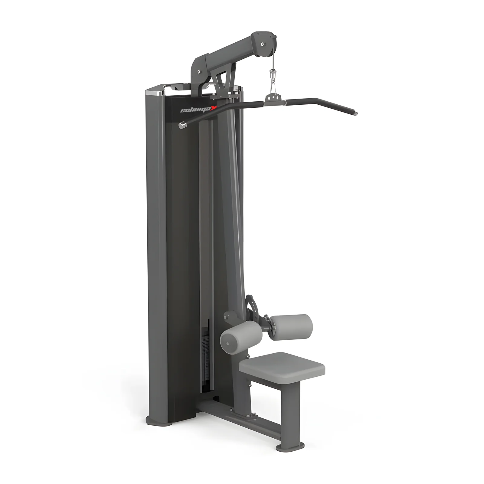 O Puxador Dorsal (Pulldown) SX415 da SchumaXX Fitness é uma peça-chave em qualquer rotina de treinamento de força. Possui almofadas ajustáveis ​​nas coxas para fixar o usuário na posição e uma barra reta com extremidades anguladas para alinhamento adequado dos braços e pulsos, promovendo exercícios seguros e eficazes para a parte superior do corpo.