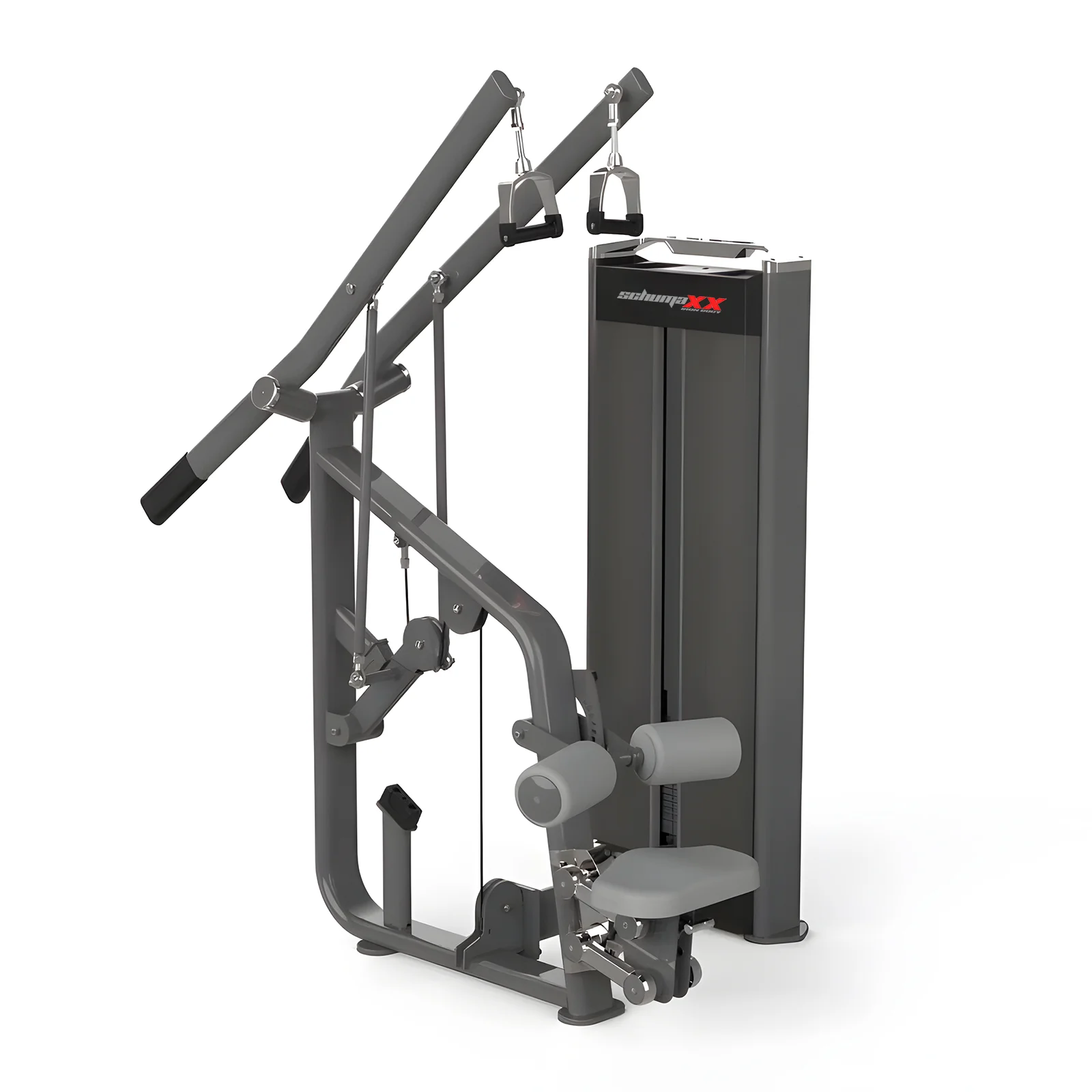 O Puxador Dorsal Divergente SX415A da SchumaXX Fitness foi projetado para proporcionar um movimento de puxada suave e natural. Possui alças giratórias , braços com movimento divergente e almofadas ajustáveis para as coxas , permitindo que os usuários experimentem um treino de dorsais mais confortável e versátil. Este aparelho oferece alinhamento adequado e posições de pegada variadas para o desenvolvimento direcionado da parte superior das costas.